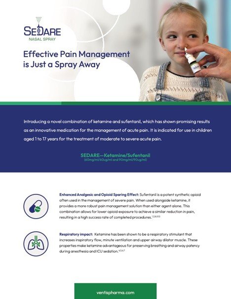 Cessatech’s first product and lead asset, CT001, is an analgesic non-invasive nasal spray for children aged 1-17 years that experience acute pain or pain related to medical procedures. Today’s analgesic solutions often require an intravenous access which is not always feasible or easy and can be painful. In contrast, CT001 has a fast onset and is easy to use. Its composition includes a fixed combination of the two well-known analgesics, which are already approved treatments for injection in pediatrics and adults. The potential advantages of the fixed combination is a faster onset of action and the avoidance of undesirable side effects such as prolonged sedation and risk of respiratory depression.